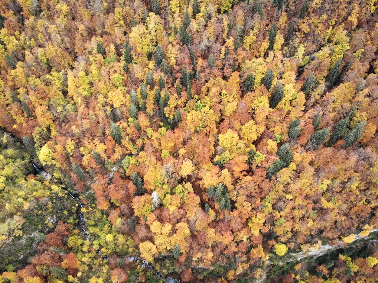 La route juste à côté des cascades de Flumen est aussi un endroit à part entière à visiter. La route monte en lacets vertigineux. Il y a des endroits pour s’arrêter et admirer les vues sur la vallée et la forêts si la météo le permet.