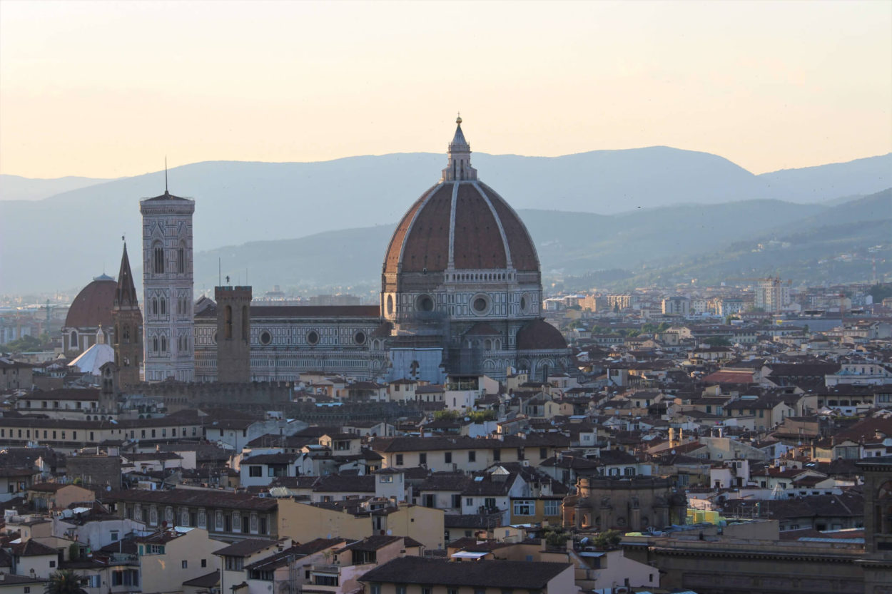 Depuis la Piazzale Michelangelo, à l’exterieur du centre historique, il y a une vue incroyable sur la ville : Le Ponte Vecchio, le Palazzio Vecchio, les églises, les toits de la ville, et bien sûr l’imposant Duomo. Au milieu de tous ces monuments, le fleuve Arto dessine le paysage, les montagnes en toile de fond. En y allant au coucher du soleil, vous ne serez pas seul, loin de là mais le spectacle jusqu’à la tombée de la nuit est magique !